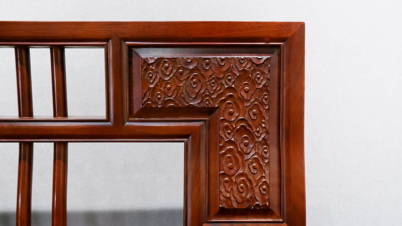 銘仁坊家具均為核桃木制作。核桃木,和道,木中君子,如玉溫潤(rùn),高古拙璞,內(nèi)斂含蓄,紋理若隱如現(xiàn),與微黃的顏色相匹配。